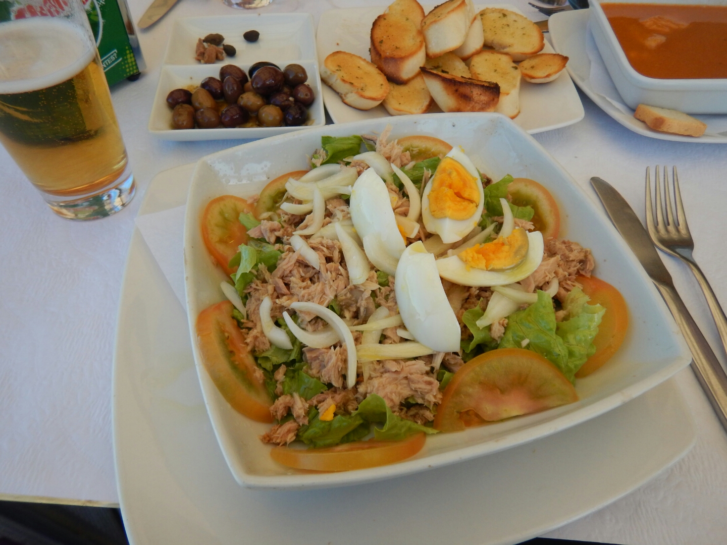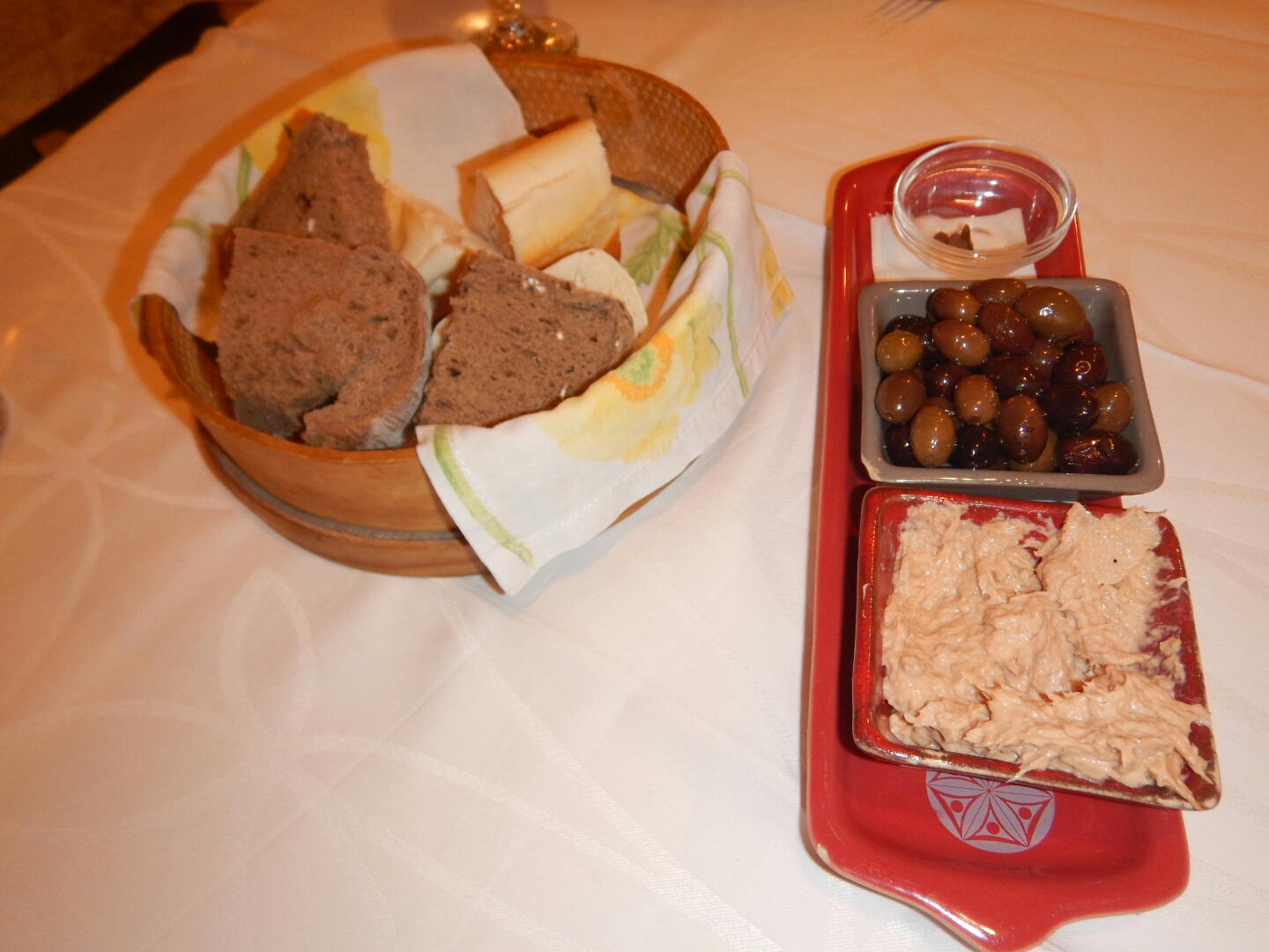 A beautiful very locally inspired meal with olives and a gorgeous tuna pate and homemade bread as starters.