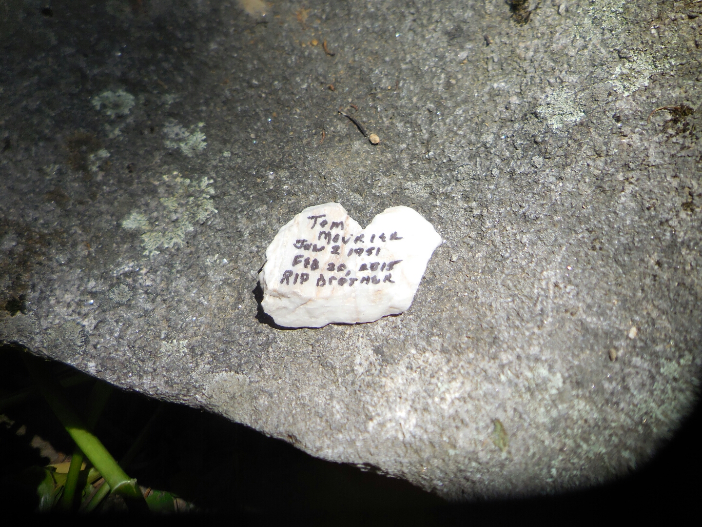 I walked for several days with a heart-shaped rock with Tom’s name, birth and death dates written on it tucked into my pack alongside a smaller rock for my sister.