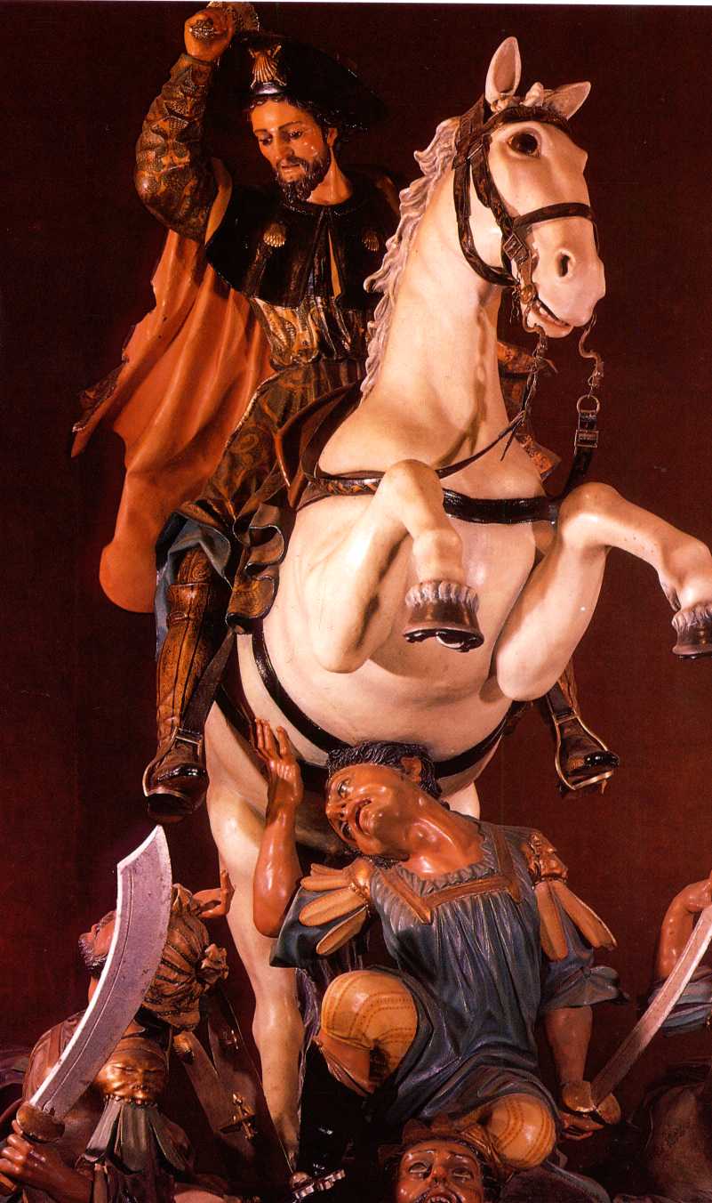 Many churches in Spain are dedicated to St. James, many of which contain his statue, whether as Apostle or Pilgrim or as Matamoros (the Moor slayer).