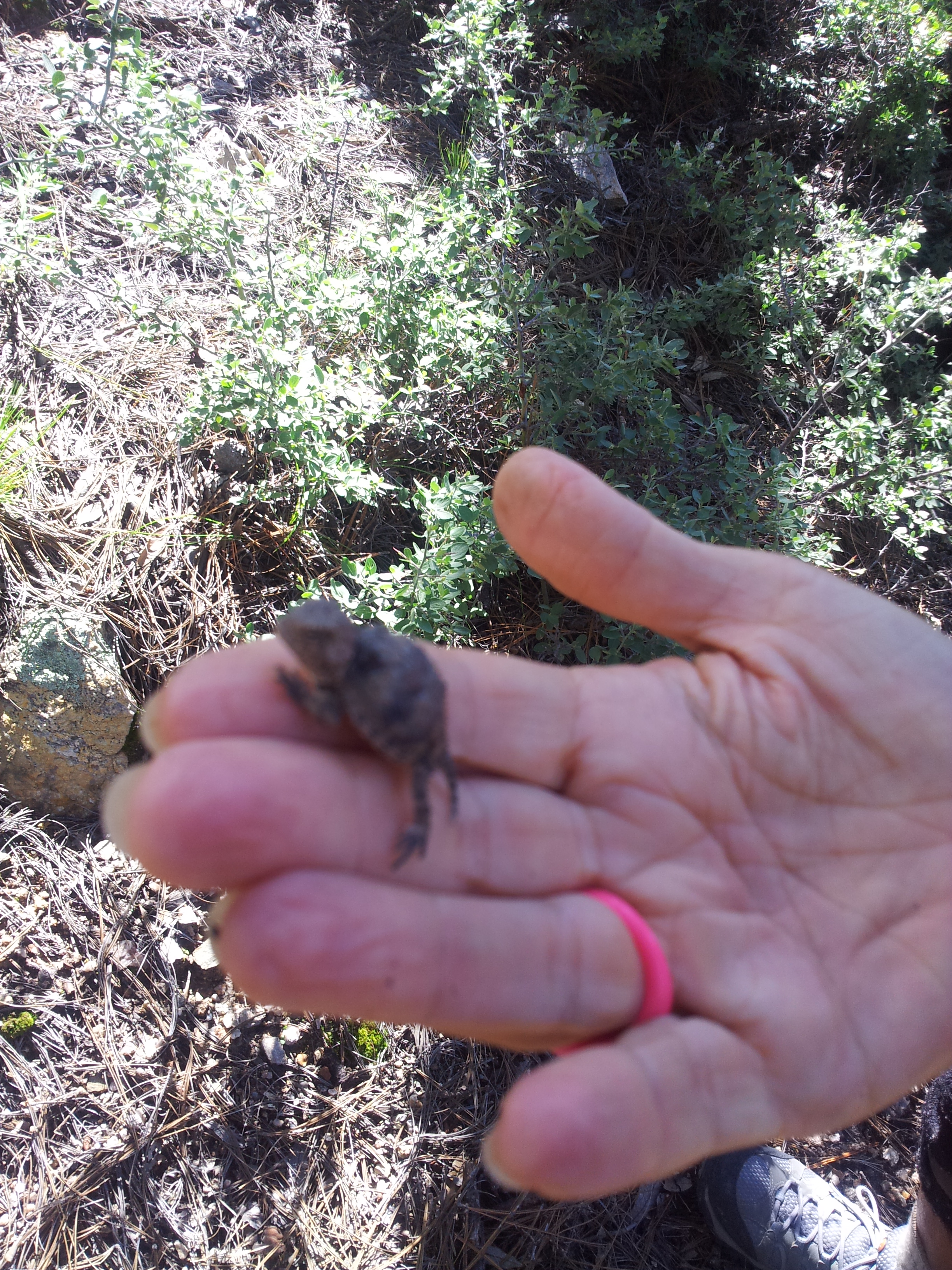 All day long we saw little horny toads on and next to the trail. Sue picked one up and he posed for his very special photo-op!