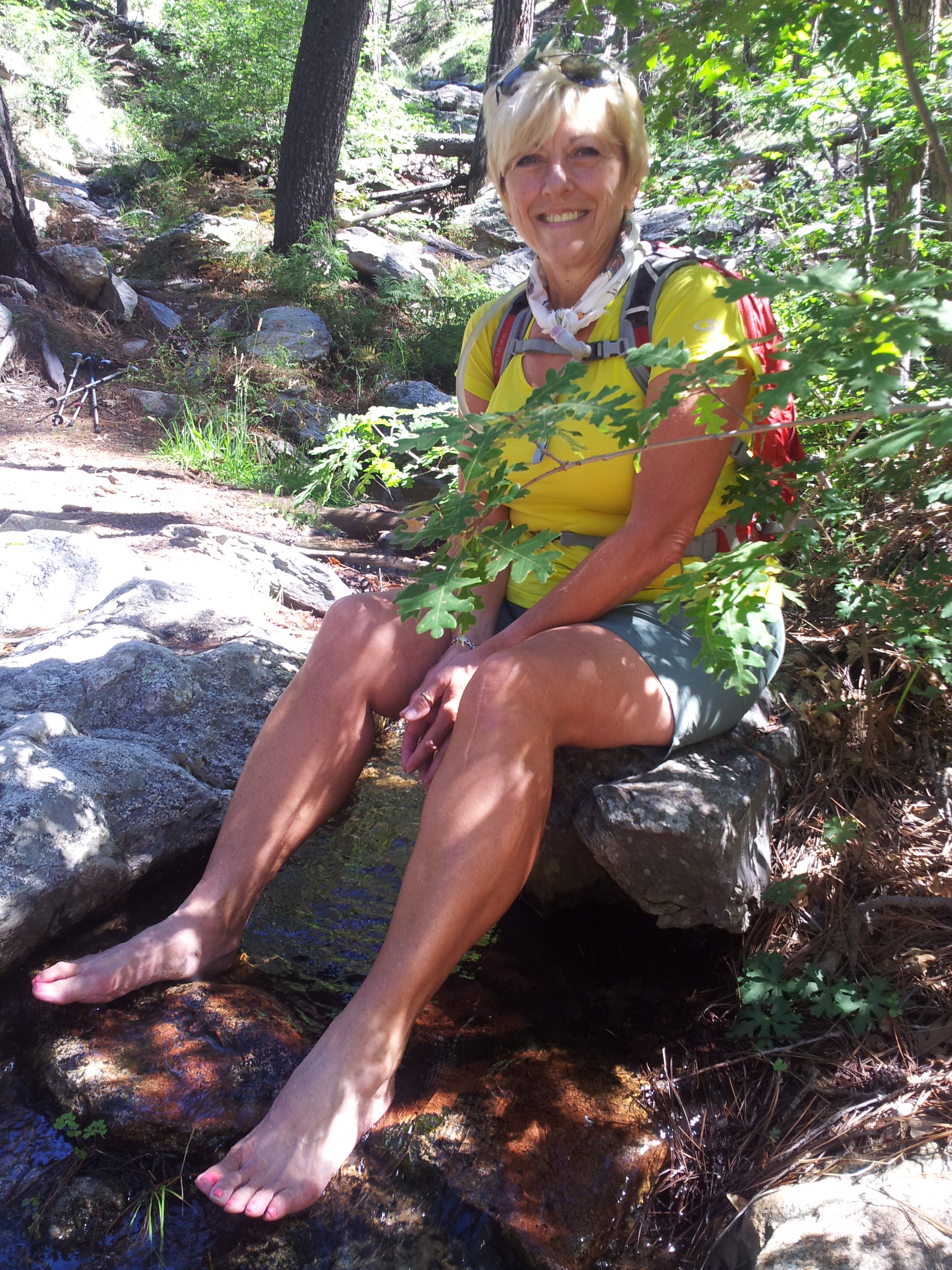 We hiked for a couple of hours and then decided to return to the car as we were getting tired and hungry. On our way back I stopped at one of the pools of water, took off my boots and socks and sat with my feet in the water. Boy was it cold! Sue followed suit.