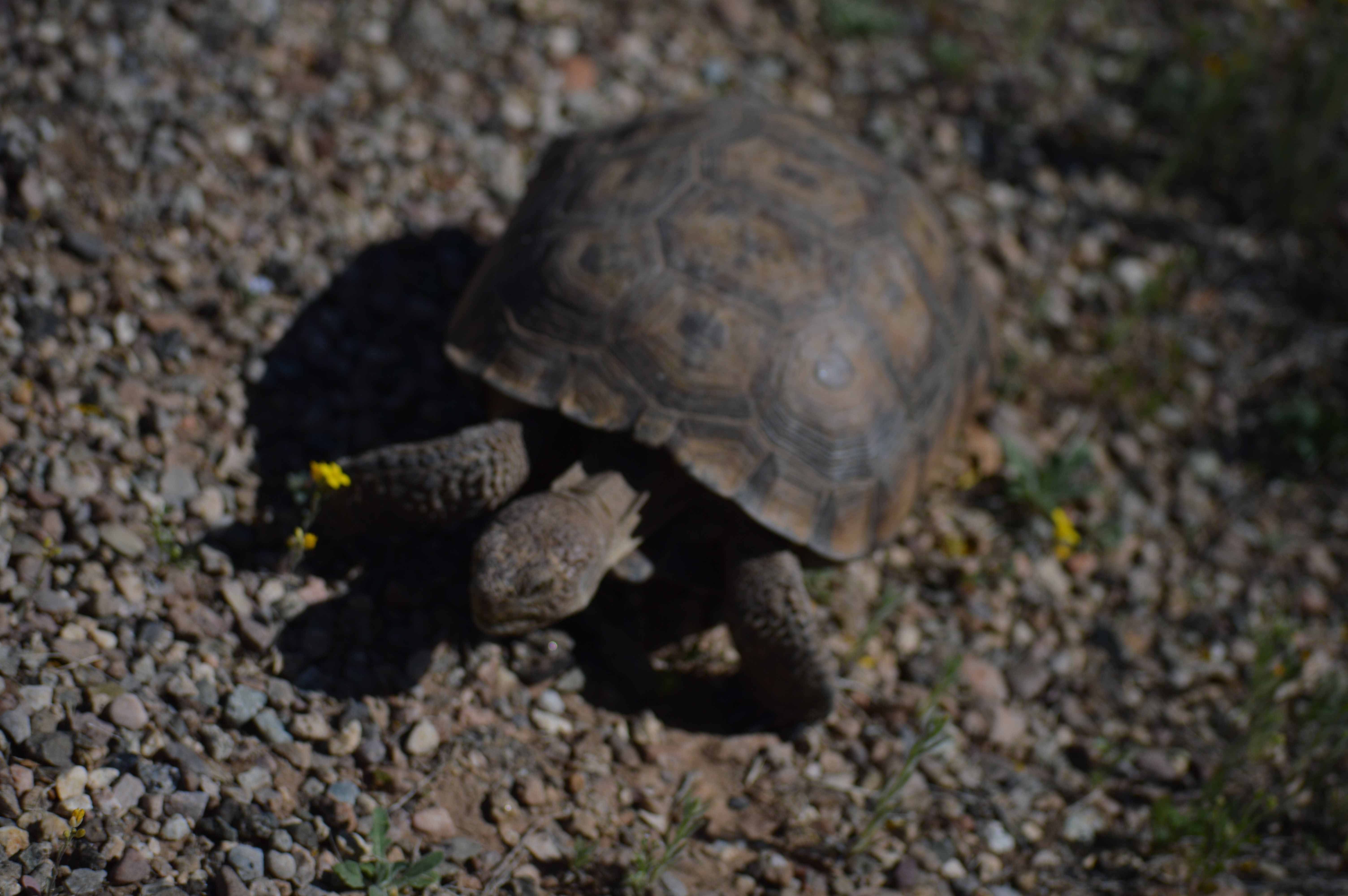 It is springtime and the desert is in full wild-flower bloom. I also saw a wild desert tortoise on the side of the road being guarded by a Park Ranger on his bicycle. The Rangers drive around the loop both in autos as well as on bicycle, I suppose making sure hikers and cyclists are not in trouble or distress.