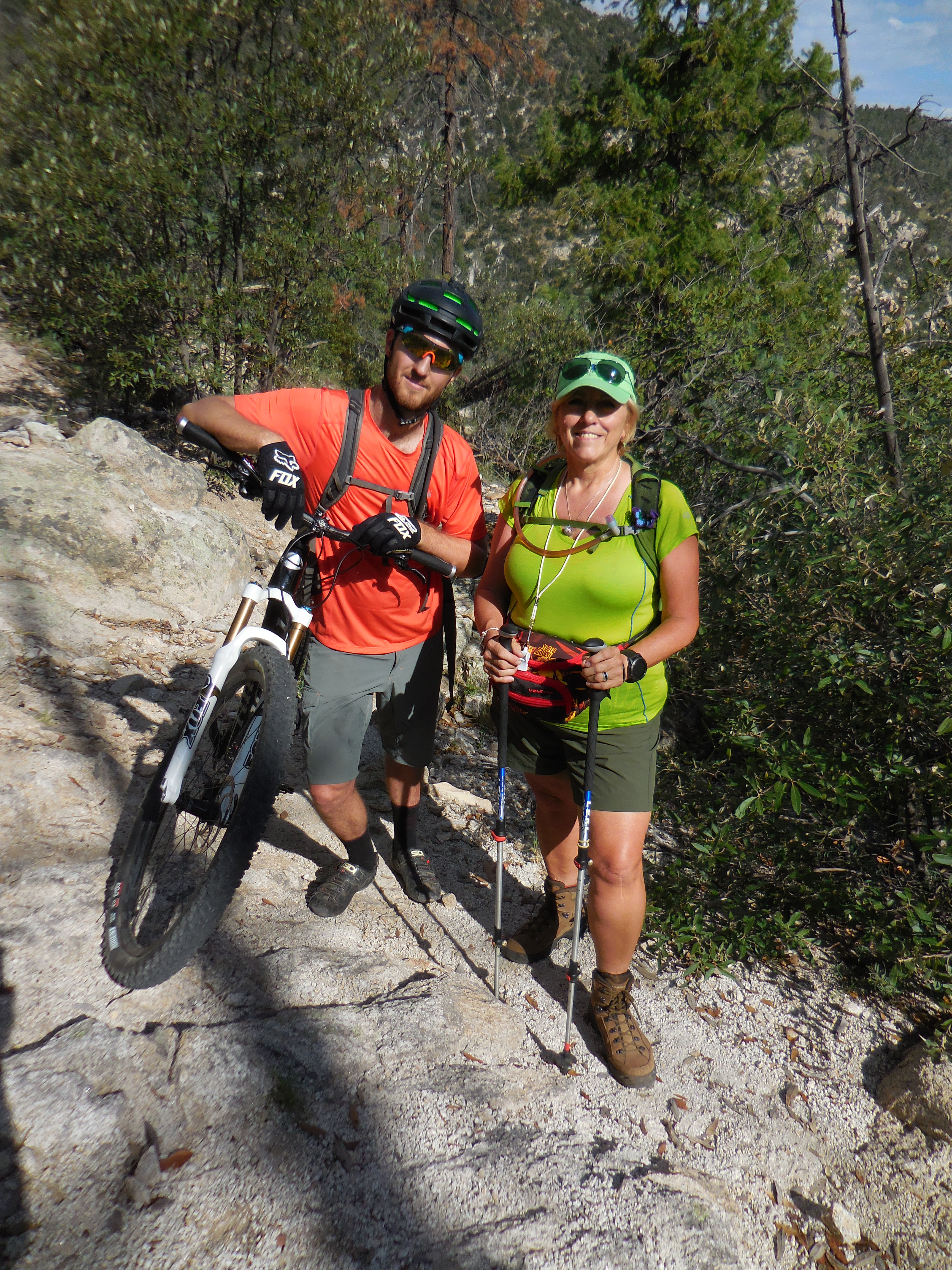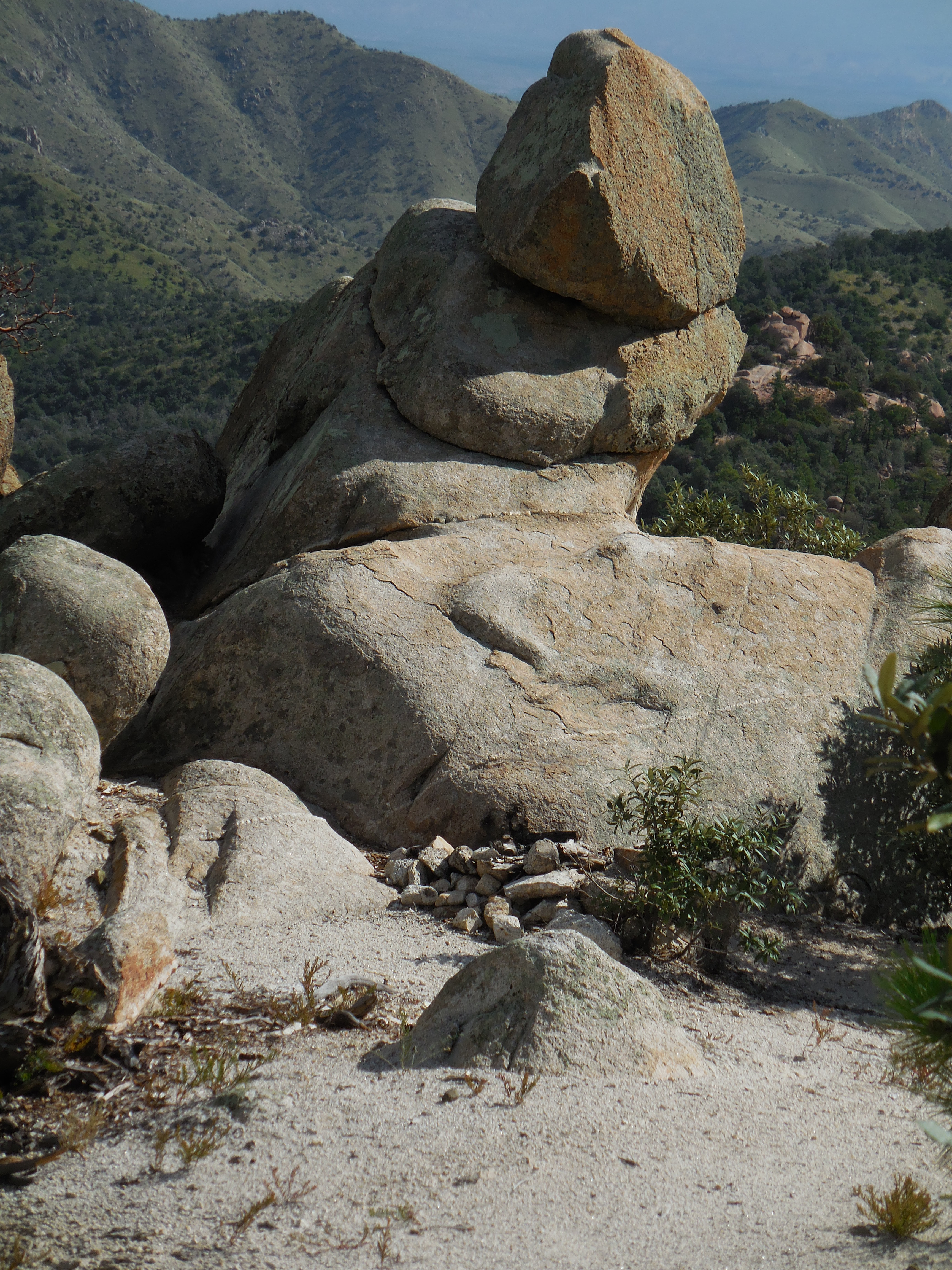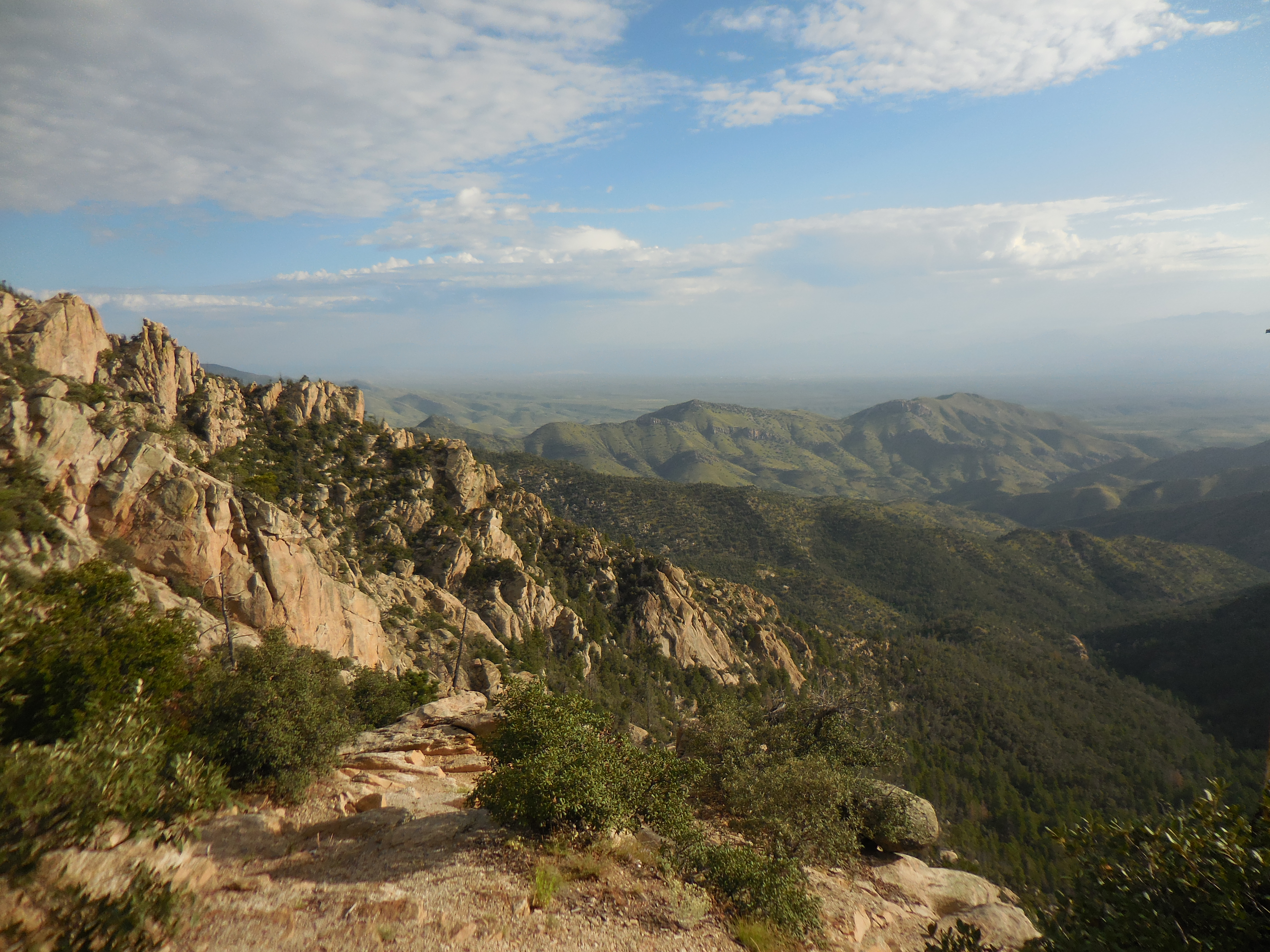It was a fabulous Sunday to be on the trail.  It had rained the night before and everything was lush and fragrant.  As usual, we were happy to be on the AZT again!   DSCN1776_1293It always seems even though we have chosen to hike this passage SOBO we must climb the mountain right out the gate.But as usual after we climb, the reward is an incredible vista.DSCN1774_1291DSCN1777_1294At one point during the hike we stopped to eat a snack and Adam appeared on his mountain bike.  Passage 11a is a famous mountain biking trail – we oftentimes step off the trail for cyclists.  We chatted for a bit, believe it or not, about the Camino, naturally I gave him a couple of my business cards.  He said his parents are very interested in the Camino.DSCN1801_1318We finished our snacks and hiked onwards.  Sometimes the rock formations appeared as though they were purposely placed.DSCN1802_1319DSCN1817_1334DSCN1806_1323And there were always absolutely beautiful views.  DSCN1804_1321